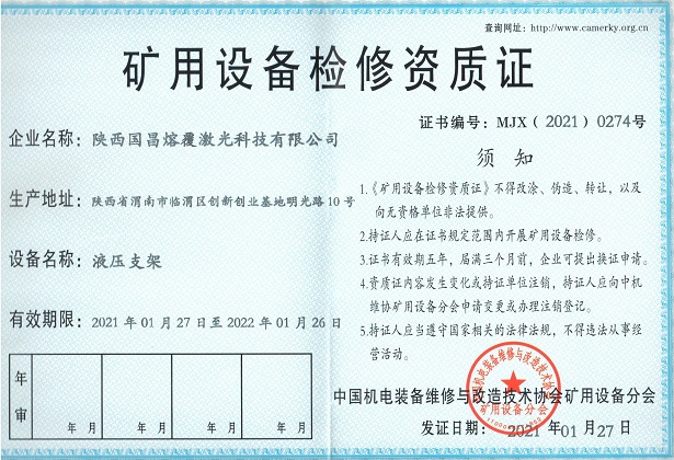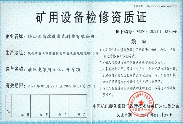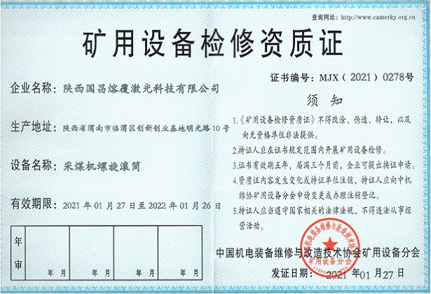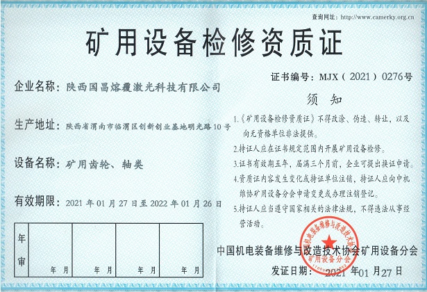 三、礦用設(shè)備檢修資質(zhì)證