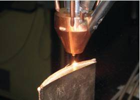 下圖為激光熔覆應(yīng)用與受損的渦輪葉片,把葉片頂端修補(bǔ)到原先的高度。熔覆過程中,激光束在葉片頂端形成很淺的熔池,同時(shí)金屬粉末沉積到葉片頂端形成焊珠。在電腦數(shù)值控制下,焊珠層迭,使熔覆層增長。圖為待打磨處理的葉片外觀形貌。作為對比,右圖給出了手工熔焊的葉片,它必須進(jìn)行額外的后期處理。葉片頂端要進(jìn)行放電加工以顯露出冷卻工程中形成的空隙,而激光熔覆省去了這些修補(bǔ)工作,從而大大減少了時(shí)間很成本。